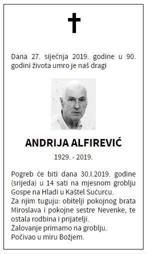 Dana 27. siječnja 2019. godine u 90. godini života umro je naš dragi