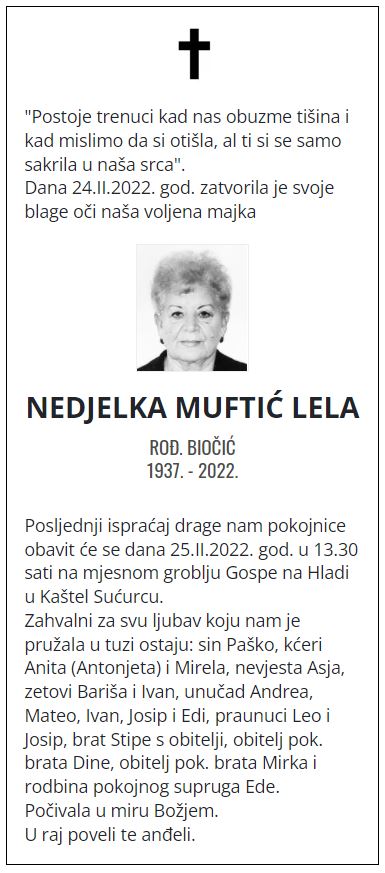 Dana 24.II.2022. god. zatvorila je svoje blage oči naša voljena