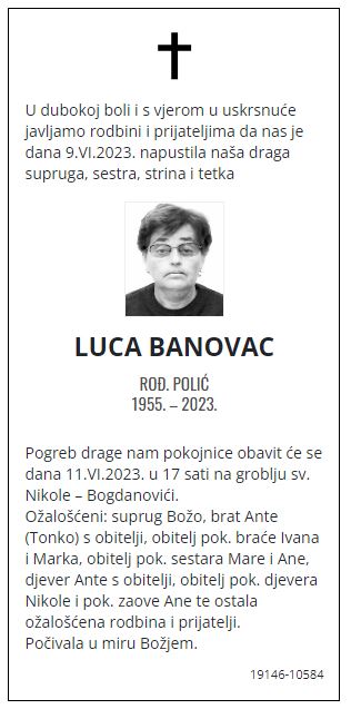 da nas je dana 9.VI.2023. napustila naša draga supruga, sestra,