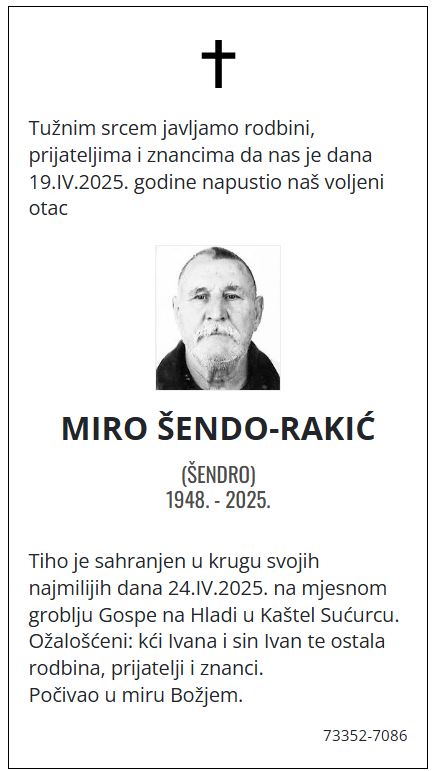 Tužnim srcem javljamo rodbini, prijateljima i znancima da nas je dana 19.IV.2025. godine napustio naš voljeni otac
