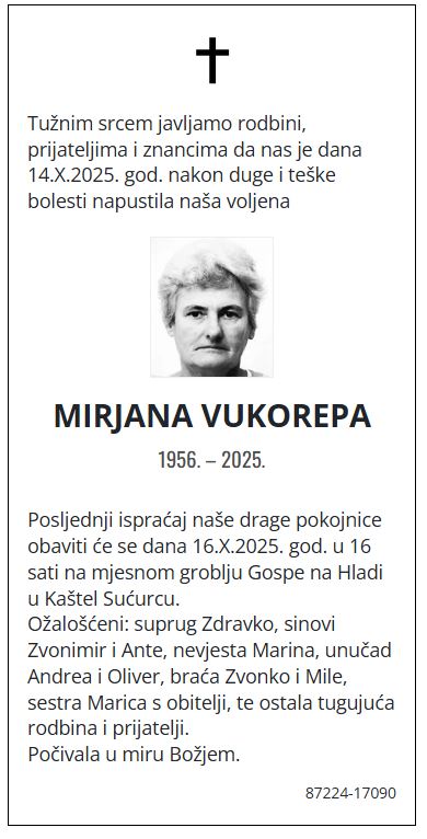 Tužnim srcem javljamo rodbini, prijateljima i znancima da nas je dana 14.X.2025. god. nakon duge i teške bolesti napustila naša voljena