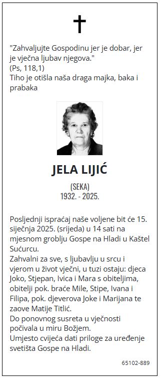 Tužnim srcem javljamo rodbini, prijateljima i znancima da nas je dana 21.XII.2024. god. napustila naša draga LJERKA PRKIĆ 1953. – 2024.