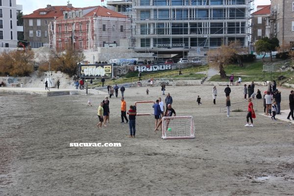 Nije,ka ča to zna bit,bilo puno hrabri,moglo ji se izbrojit na prste obe ruke,a kad su se več našli,ka ča to inače bude kroza cilu godinu,dvi ekipe,svaka na svoje uobičajeno misto,bacile su na male branke,jedni obučeni u majice i kratke,oli duge gače,daleko od mora,tamo di savura nije mokra,a ovi drugi,bez ičega,samo u mudantine i to tika uz more,tako da su cilo vrime bili mokri nog,a sad je li jin bilo zima,samo oni znadu,a ovi jedan među njiman se sitija kako se od leda obranit,pa je na ruke meka rukavice…