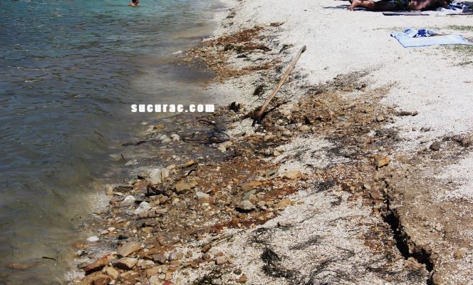 A ovu san doli sliku približija pa morete vidit razmjere ote zemlje ča izvire na plaži,sa juga je to više izraženo,sjeverna strana pomalo,ali sigurno ide prema izgledu one južne bande i prije je to bilo okolo niki desetak dužinski metri,a sad je to več i blizu dvadesetak metri…