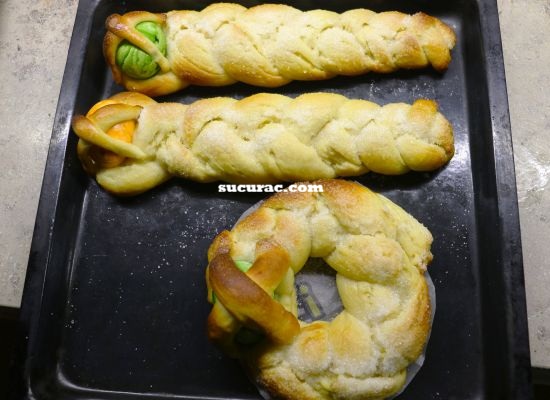 Kolač je okrugloga oblika sa udubljenin dilon di se nalazi jaje koje se učvrsti sa dvi trake tista u obliku križa,dok je guska izduženi kolač u obliku pletenice koji u gornjemu dilu isto tako jema smišteno jaje,koje je ka i na onemu okruglomen kolaču,učvrščeno sa dvi trake od tista…